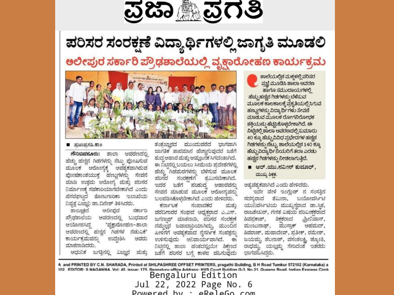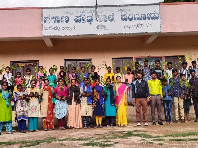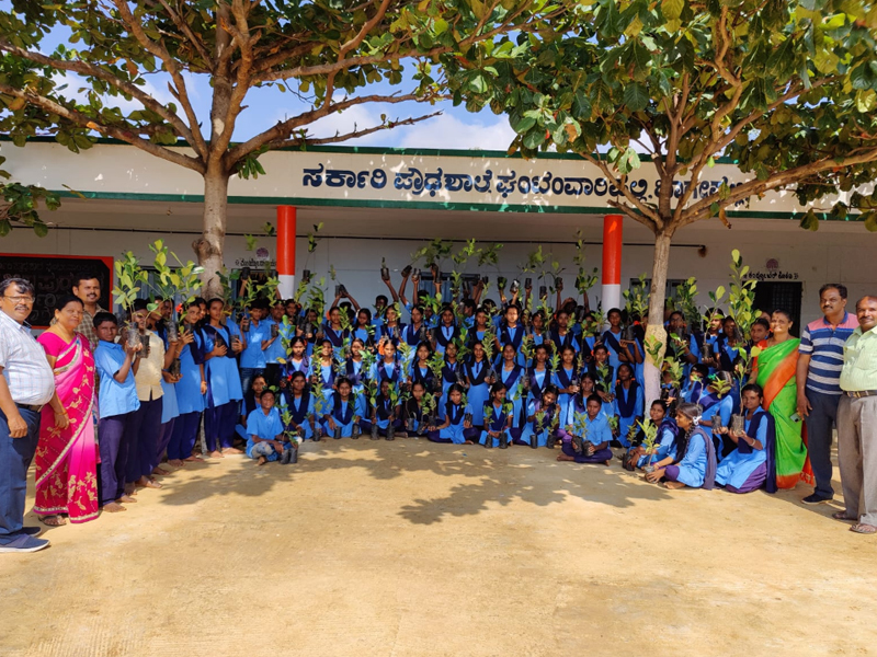 We initiated the Fruit Prints program, aiming to plant fruit-bearing trees in rural government schools, enhancing nutrition levels. Additionally, 2000+ saplings were distributed to girl students across 27 schools in Chikkaballapur district for planting on their land.