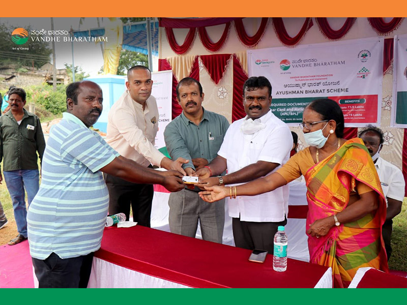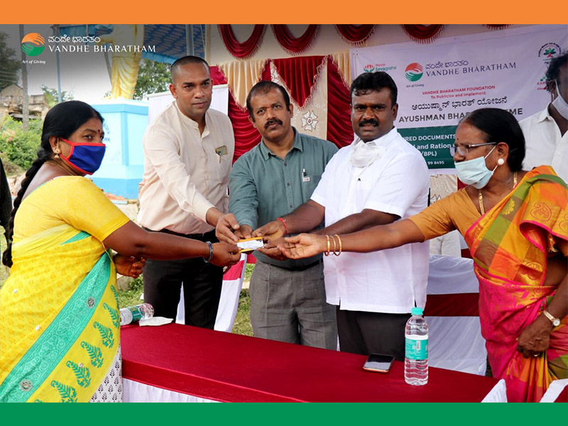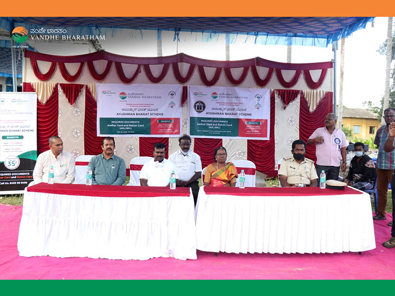 Enrolling the eligible beneficiaries to get benefit of Health package under Ayushman Bharath is a huge task. The Karnataka Unit of Ayushman Bharath has appointed Vandhe Bharatham as its facilitator and as a first step ahead in publicizing the scheme, a camp was conducted at Marikuppam, KGF, Kolar District in association with Chellappa Golden Welfare Association on 7th and 8th of November,2020.