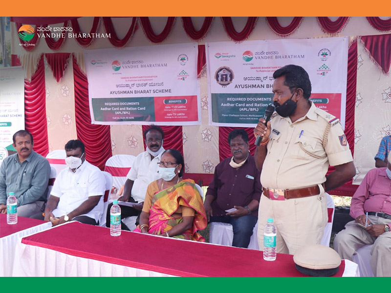 Smt.Ilakkaya Karunagaran, IPS, Superintendent of Police, KGF inaugurated the camp. We had distributed pamphlets all around seeking cooperation of the people in the vicinity. Around 1000 people gathered at the venue and 600 beneficiaries got Health Package Card under Ayushman Bharath. This is a very good start and in days ahead, Vandhe Bharatham plans to organize more of such programs in different parts of Karnataka to ensure that the scheme will reach all those eligible beneficiaries in a great way. Our initiative to has got vibrant reciprocation at KGF and it will boost the morale to go ahead in a faster pace.